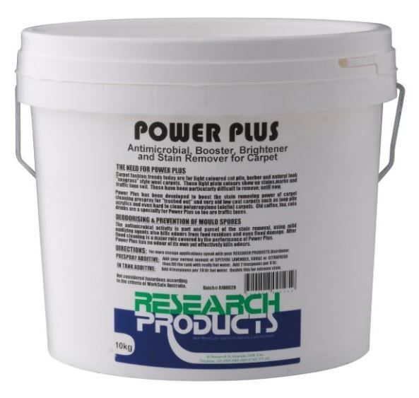 Booster, brightener and stain remover developed specially for use on white or light coloured cut pile and Berber style carpets, both wool and synthetic. The ability to remove stains and carpet dulling in traffic lanes is greatly improved by adding POWER PLUS with SURGE when pre-spraying. To enhance the effectiveness use with hot water, up to 80oC for synthetics and 70oC for wool. It is compatible for use with truck mount machinery and portable extraction machines while pre-spraying. Ensure that carpet is evenly sprayed for maximum effectiveness.