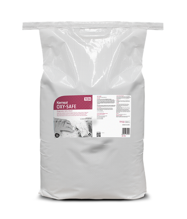 OXY-SAFE cleans and sanitises clothes and other fabrics. It hygienically removes stains and odours and gives clothes extra brightness. It is not suitable for use on woollens or silks. It should not be used with soft metals or aluminium. OXY-SAFE contains an oxygen bleach which is safe on dye fast coloured garments. Always check washing instructions on ALL garments before proceeding. If unsure of a fabrics suitability for use with OXY-SAFE, always test on a small scale before full-use. The concentrated formula is suitable for soak applications or can be added as a boost to hot machine-washed using a long wash cycle. MPI APPROVED C33 Properties Appearance: White Powder Fragrance: No fragrance pH: 10 to 11 (1% w/v solution) Microcide: Active oxygen