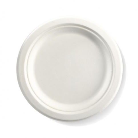 Dinner Paper Plate made from natural plant fiber derived from sugarcane. Suitable for microwave and refrigeration, with oil and water resistance for various meals. Dimensions: 230mm diameter Quantity: 500 plates per carton