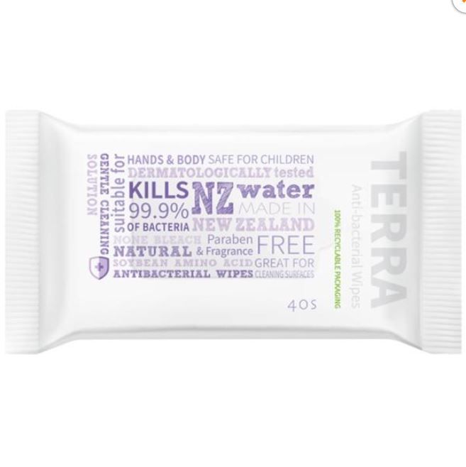 Dermatologically tested, Terra Antibacterial Hand & Surface Wipes kill 99.9% of bacteria. The wipes are formulated with a gentle, cleaning solution containing soyabean amino acid and can be used on hands, body and hard surfaces. Terra Antibacterial Wipes are safe for use with children over 3 years old and do not contain any bleach, paraben or fragrance. The wipes are supplied in a compact pack of 40, making it handy to carry in your handbag or vehicle. - Antibacterial wipes for hands, body and hard surfaces - 55gsm cloth made of 100% bamboo fibre - Kills 99.9% of bacteria - Formulated with soyabean amino acid - Dermatologically tested and safe for children over 3 years old - Does not contain any bleach, paraben or fragrance - -Each wipe measures 200x170mm - Supplied in a compact handy pack of 40 wipes