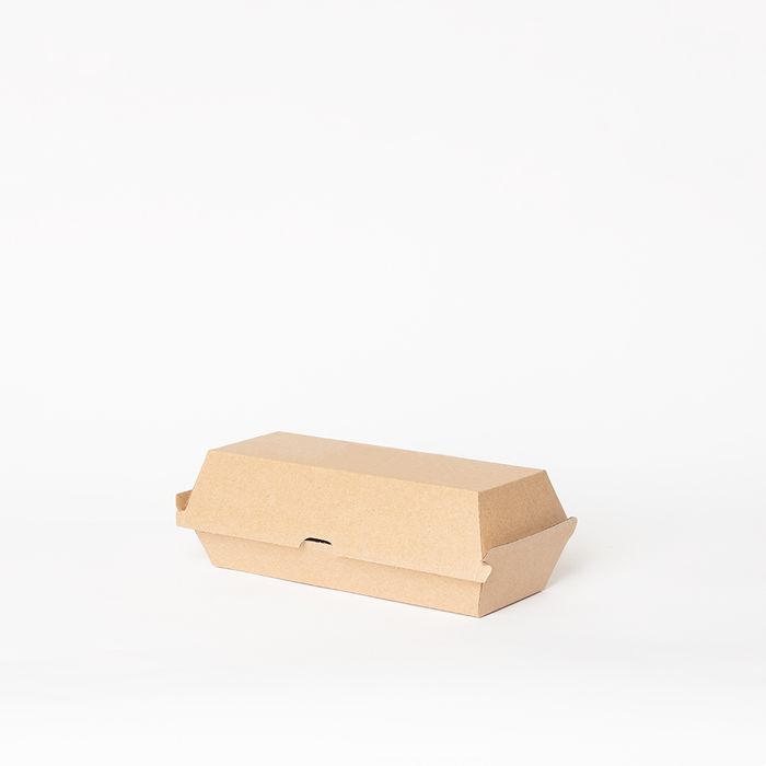 Kraft Hot Dog Box - This box is perforated so it can be split in half, making it in to two even sized trays. Dimensions: 208 x 70 x 75mm Alternative: F1928.1