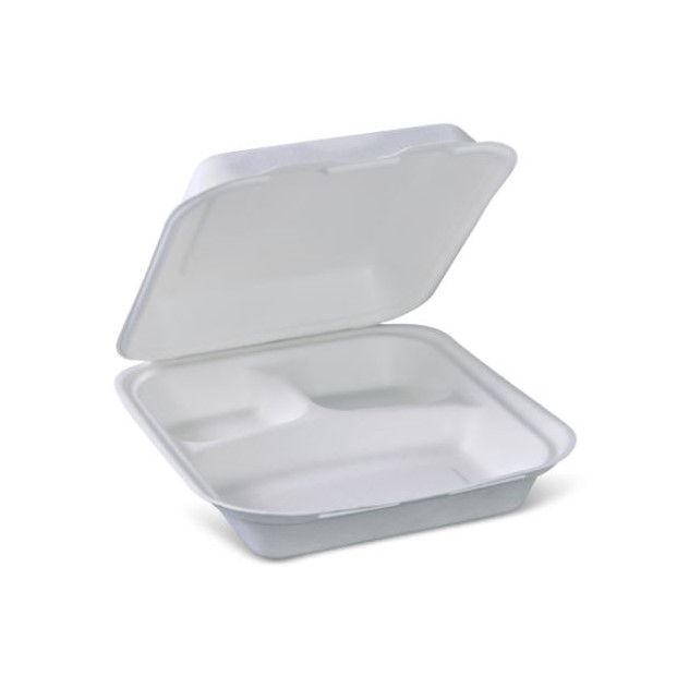 - Sugarcane 3-Compartment Clamshell 200 x 220 x 80mm 200/ctn