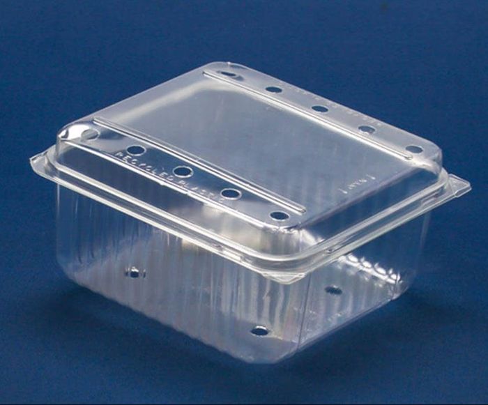 RPET Clear container with holes in base & lid Dimensions: 180 x 175 x 90mm