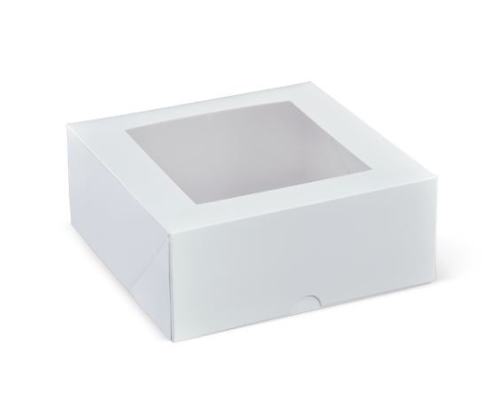 The window patisserie range features a large window to show off cakes, pastries and other bakery items. A light claycoat provides protection against grease. It is offered in white, and is ideal for branding. Dimensions: 180 x 180 x 75mm