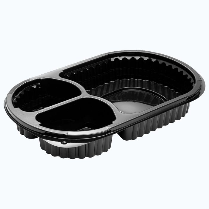 - PP 3 Compartment Tray 600ml 235 x 145 x 42mm 400/ctn